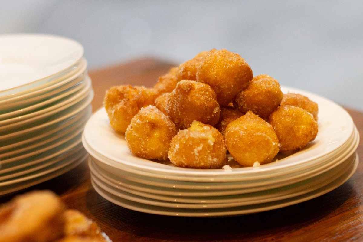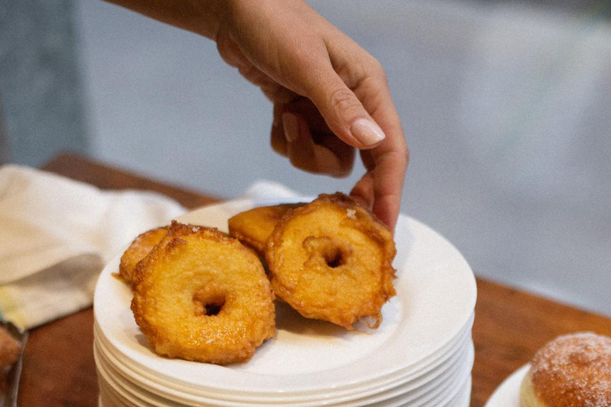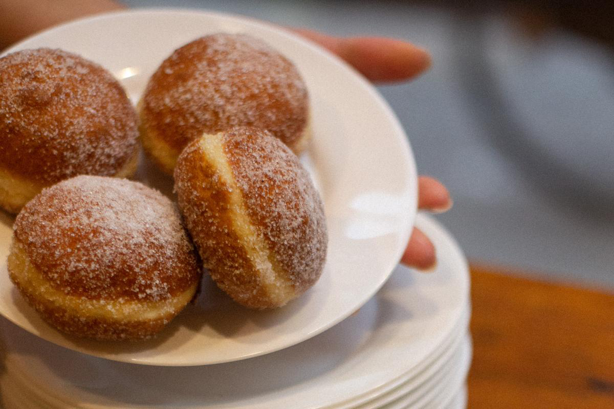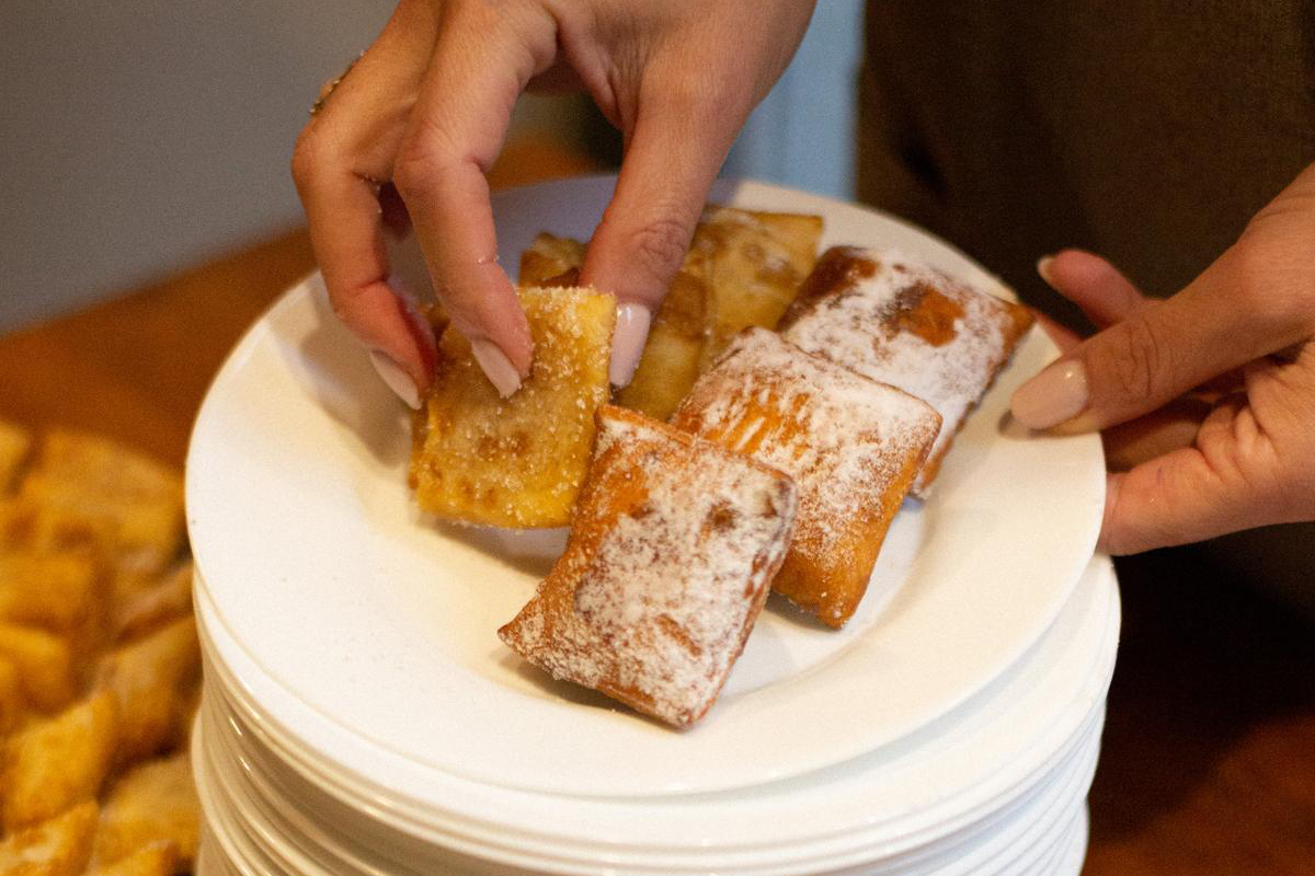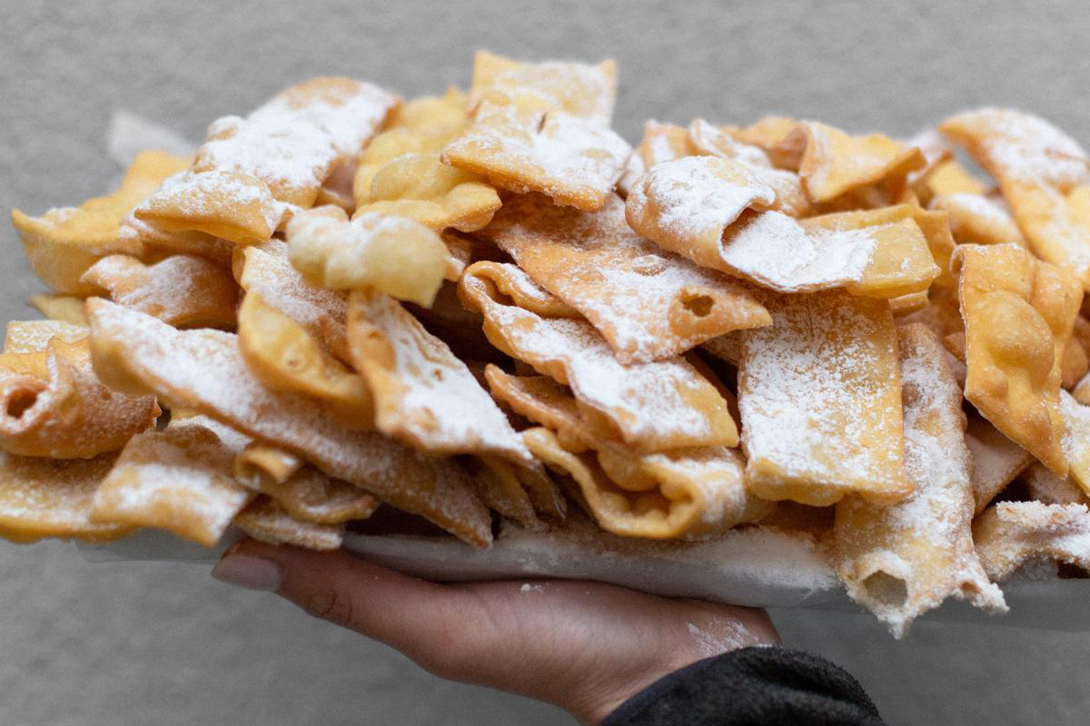 Bugie ripiene con marmellata di albicocche e crema di nocciole.